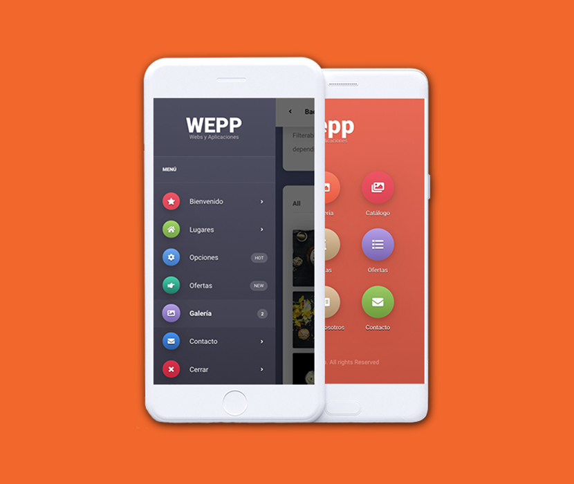 Elige el tipo de menú, elige los colores, elige los apartados, elige el contenido, elige los iconos… elige y personaliza tu aplicación con un acabado profesional.